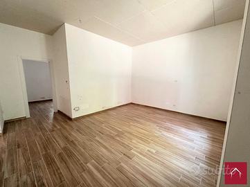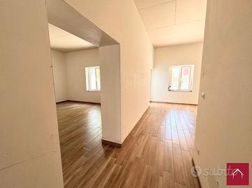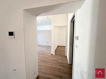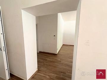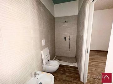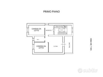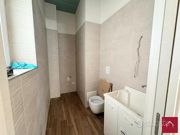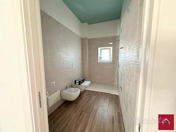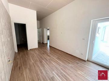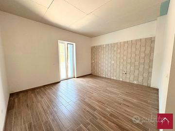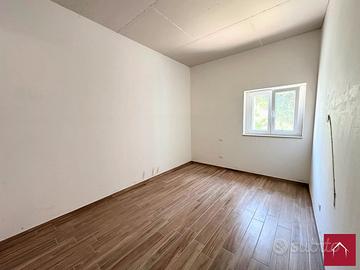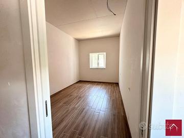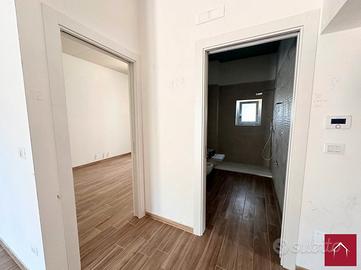 Al primo piano troviamo il secondo trilocale (86mq di interno e 13mq di balcone), composto da ingresso, soggiorno open space, balcone ampio abitabile, bagno e doppia camera da letto.