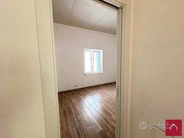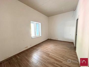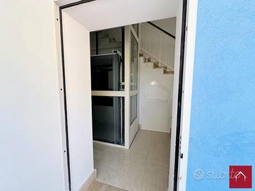 al pianto terra troviamo l'ingresso alla palazzina con corte comune al piano rialzato e l'accesso alla palazzina che porta in un vano portone dove troviamo un ripostiglio con centralina di regolazione per l'impianto solare termico e boiler, subito accanto al ripostiglio, abbiamo il primo immobile: