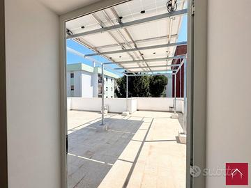 Al terzo piano, invece, troviamo, torrino con centralina impianto fotovoltaico e ampio terrazzo di 85mq, anch'esso completamente ristrutturato con nuova guaina e pavimentazione, soglie, pannelli fotovoltaici e termici.