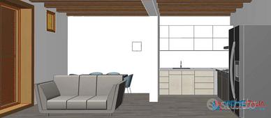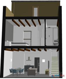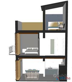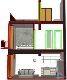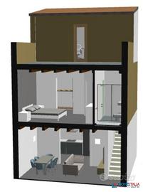 - Piano terra, doppio ingresso su ampio open space cucina-soggiorno e un bagno.