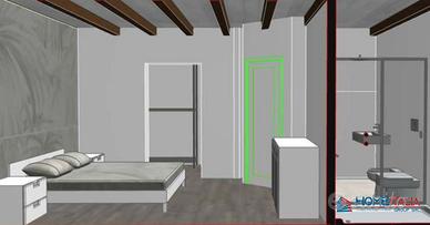 - Piano primo, ingresso su disimpegno, camera da letto matrimoniale con cabina armadio, bagno e ripostiglio.
