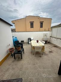 Una scala interna conduce al terrazzo, parzialmente coperto, dove si trovano una cucina e un bagno con vasca: uno spazio ideale per momenti di relax o convivialità all'aperto.