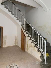 Dall'ingresso si apre una scalinata in graniglia nera e ringhiera in ferro battuto su caratteristica volta rampante che porta ai piani superiori.