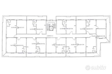 In tutto, distribuite sui quattro piani, 32 suite con soggiorno e cucina a vista, camera matrimoniale e bagno e 4 suite con soggiorno e cucina a vista, camera matrimoniale, cameretta e bagno. Le camere al secondo, terzo e quarto piano sono tutte con balcone, gli infissi esterni sono in alluminio e doppio vetro, quelli interni in legno tamburato, alle scale le porte REI e il sistema antincendio. Ogni camera è dotata di impianto di riscaldamento autonomo radiatore individuale modulante a metano o GPL. I metri quadri totali approssimativi dei cinque piani sono circa 2.500. Completa la proprietà un terreno di 200 metri quadri.