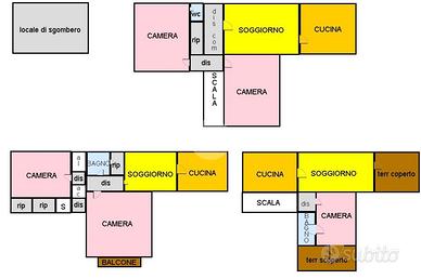 L'immobile si sviluppa su 3 livelli, con la possibilità di suddividere i piani in unità indipendenti.