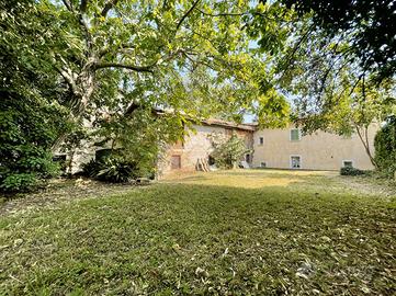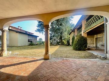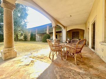 Prestigiosa proprietà con parco privato comprendente casa padronale, abitazioni, stalle, fienili, magazzini ed antica farmacia. La facciata è decorata con insegne dell'epoca e vetrine. All'interno l'ambiente conserva numerose scaffalature, armadi e bancone in legno. Adiacente al corpo di fabbrica laterale è ubicata la casa padronale, residenza principale e più imponente della corte, la cui facciata richiama lo stile degli antichi monasteri: il grande porticato, infatti, è adornato da colonne ed archi in pietra. Gli interni sono spaziosi, con saloni dai soffitti decorati, camini monumentali e mobili antichi. Le stanze, ampie e luminose, si affacciano sul vivibile loggiato ben esposto e soleggiato. Le due ali ove sono siti gli appartamenti, la stalla ed il fienile, edifici robusti situati in una parte separata della corte interna, sono costruiti in pietra e mattoni, con tetti in legno e tegole. Strutture immerse in un ambiente pittoresco e cadenzato dal frinire delle cicale. Dal chiostro principale affacciato sul verde esclusivo, sovrastato da un imponente cedro secolare si accede, attraverso un portone in legno con dettagli in ferro battuto, al giardino retrostante: una chicca caratterizzata da piante e alberi da frutto al quale si può arrivare anche da due diversi accessi carrai esclusivi.