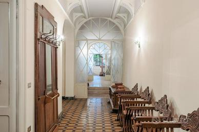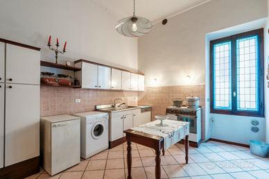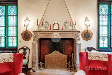 Dal primo piano si accede inoltre a una terrazza di circa 180 mq, affacciata sul verde del giardino, ideale per momenti di rappresentanza e quiete. Il piano terra, storicamente destinato alle attività operative della proprietà, conserva un'anima più funzionale e "industriale", pur non rinunciando a sale finemente decorate e soffitti affrescati.