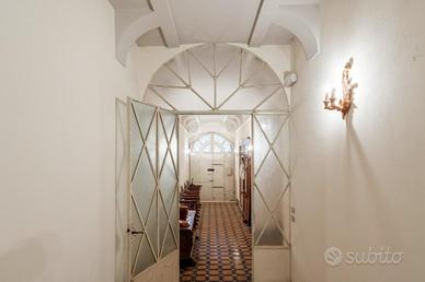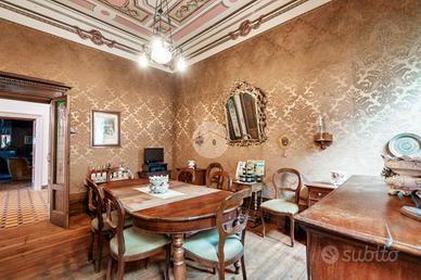 Nel pieno centro storico di Salò, a pochi passi dal lago, proponiamo un palazzo storico del 1800 di straordinaria rarità, giunto fino a oggi completamente intatto in ogni sua parte. Un'autentica dimora d'epoca che conserva arredi originali, accessori, lampadari, finiture e materiali di assoluto pregio, testimoni di un passato illustre e perfettamente leggibile. L'edificio si sviluppa su una superficie interna complessiva di circa 879 mq, articolata su piano terra, primo piano, secondo piano e sottotetto, tutti collegati da una scenografica scala interna di grande impatto architettonico. Gli interni sono impreziositi da affreschi originali, soffitti cassettonati, parquet pregiati, pavimenti in marmo e dettagli decorativi di altissimo livello, che restituiscono il fascino autentico delle grandi residenze nobiliari ottocentesche. Elemento di unicità assoluta, difficilmente riscontrabile tra i palazzi storici del centro: un giardino privato di circa 874 mq, elegante e riservato, vero polmone verde nel cuore urbano. All'interno del giardino si trovano una suggestiva limonaia con struttura vetrata e un magazzino con portico, perfettamente integrati nel contesto storico.