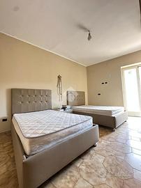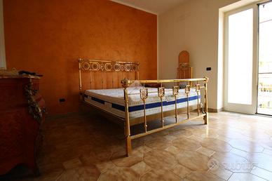 Al piano rialzato vi è il primo appartamento, con ingresso nella zona giorno con cucina abitabile, proseguendo vi sono 3 camere di cui una con bagno privato.