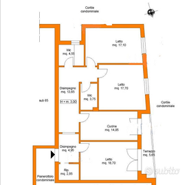 Composto da tre camere da letto, cucina, ripostiglio, doppio accessori.