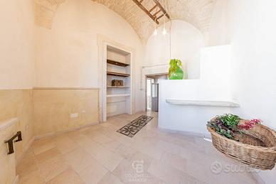 Rif: CBI150-2571-63807 Classe energetica: G - EPglnr: 283.43 kWh/m² PUGLIA - MARTINA FRANCA (TA) Nel suggestivo centro storico di Martina Franca (TA), proponiamo in vendita palazzina costruita nel 1744 di mq 165 circa, con affaccio su via Donizetti e via Mazzini, luxury house, dapprima rientrante nel palazzo del barone Blasi , XVIII secolo: il palazzo nobiliare più antico di Martina Franca. Disposta su due livelli, è composta da un vano ingresso a piano terra, da tre vani, oltre a cucina e bagno al piano primo e da due vani al piano secondo. Nella stanza da bagno, al primo piano, sono presenti arredi di pregio: una vasca idromassaggio Jacuzzi, sanitari in porcellana, le rubinetteria in ottone e porcellana stile old England, una consolle Luigi Filippo stile Shabby Chic e si possono ammirare dei pannelli di Kerlite che raffigurano sulla parete il sentiero di un bosco. Sempre al piano primo nella sala di ingresso vi è un e romantico lucernario illuminato da luce naturale. Al piano secondo, vi è la predisposizione degli impianti per la realizzazione di un possibile secondo bagno; dal secondo piano si accede direttamente su un lastrico solare con vista della basilica di San Martino e delle chiese barocche di Martina Franca. La palazzina storica è stata finemente riqualificata con accessori di pregio, quali pavimenti in cementine antiche, radiatori in ghisa con valvole termostatiche in ottone antico, nel pieno rispetto delle forme, dei colori e dei materiali d'epoca: rifinita con pietra a vista, presenta volte "a stella" e capitelli. Si distingue per l'ampia luminosità e per la veduta su piazza San Francesco D'Assisi, oggi piazza Mario Pagano.