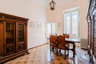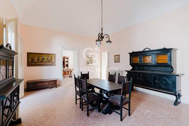 Rif: CBI104-2688-291 Classe energetica: G - EPglnr: 455.21 kWh/m² Palazzo Nardò - Via Matteotti Via Margherito Coldwell Banker propone in vendita un affascinante palazzo di fine Ottocento nel cuore del centro storico di Nardò, a pochi passi da Piazza Salandra. Con un prospetto tra i più eleganti e riconoscibili della città, questa dimora storica si sviluppa su circa 610 mq distribuiti su due livelli, entrambi con ingressi indipendenti, e racchiude il fascino intramontabile dellarchitettura depoca unito a straordinarie potenzialità. Uno degli elementi più scenografici dellintero palazzo è senza dubbio lelegante balcone angolare, vero tratto distintivo delledificio. Finemente scolpito in pietra leccese, si sviluppa con una linea curva che abbraccia langolo del prospetto. Questo scorcio cattura leleganza architettonica del palazzo evidenziando uno dei suoi elementi più iconici: langolo curvo con balcone decorato e loggiato superiore, sorretto da imponenti mensole scolpite. Il raffinato gioco di volumi e dettagli, come i motivi floreali in pietra leccese e il ferro battuto artistico, raccontano lo stile e il prestigio di fine Ottocento, rendendo questa facciata una vera opera d'arte nel cuore del centro storico di Nardò. Varcando lelegante portone in legno ad arco, incorniciato da bugnato a rilievo dal disegno sobrio e nobile, si accede a un ingresso scenografico che racconta lanima autentica del palazzo la cui vista si apre su un ampio androne voltato, dove luce e proporzioni creano unatmosfera di sobria raffinatezza e la profondità del corridoio conduce lo sguardo verso una corte interna che promette silenzio e privacy. A destra, una scalinata in pietra con balaustra lineare si sviluppa sotto un arco ribassato, conducendo al piano nobile: un elemento architettonico che unisce funzionalità e fascino depoca. Un ingresso che non è solo passaggio, ma vera dichiarazione di stile. La residenza principale accoglie con un elegante...