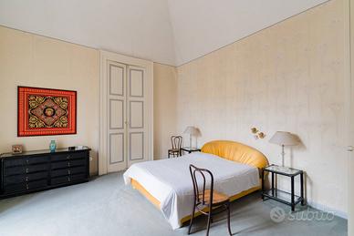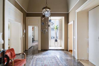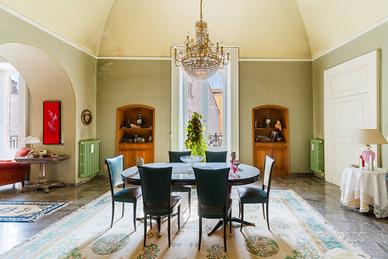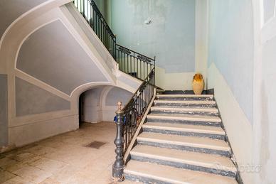 Il piano terra accoglie lingresso della dimora con circa 123 mq di superficie coperta e 45 mq di area scoperta. Laccesso avviene attraverso un ampio atrio interno utilizzabile anche come parcheggio privato, elemento di grande valore nel centro storico, che introduce a un importante androne coperto dal quale si sviluppa la scenografica scalinata in pietra, ampia e raffinata, tipica dei palazzi nobiliari.