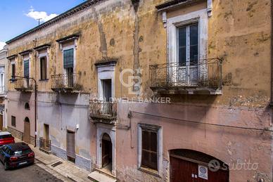 L' immobile è strutturalmente solido, in buone condizioni di manutenzione, ma necessità di una ristrutturazione, anche dal punto di vista delle rifiniture e degli gli impianti idrici ed elettrici. I materiali originali, come le volte ed alcuni pavimenti sono ancora presenti e questo permette di operare una ristrutturazione in unottica conservativa allo scopo di preservare tutto il fascino e latmosfera di una residenza dellepoca. Sulla facciata risaltano alla vista 5 balconi con rifiniture dellepoca che impreziosiscono e rendono più gradevole il prospetto. Allo stesso si accede da un ampio portone posto direttamente su strada, dove un comodo e spazioso vano scala, con gradini non alti, a differenza della tipologia trovata in zona, porta poi al piano superiore, dove a destra entriamo in un grande salone con porta finestra e balcone, una cucina con camino, un bagno con annesso un vano lavanderia collegato da una porta ad un affaccio interno, a sinistra entriamo alla zona notte, composta da 4 grandi stanze consequenziali che si alternano con volte a stella e cielo di carrozza, alcune delle quali decorate da bellissimi affreschi dellepoca. Una 5° stanza, alla fine, in fondo al lunghissimo corridoio ed al lato delle 4, anchessa molto ampia, dotata di un comodo vano sottoscala ed un annesso locale tecnico, porta, attraverso una rampa di scale al fantastico terrazzo, dal quale si può godere di una vista mozzafiato sul paese e da dove si può scorgere la vicina Chiesa Madre ed il caratteristico Castello Dentice dei Frasso.