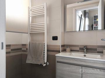 L'appartamento è stato ristrutturato nel 2019, con rifiniture di pregio: infissi in alluminio DOMAL TOP 65 con vetrocamera, tapparelle elettriche in alluminio, porta blindata, porte interne con serrature magnetiche e dettagli in pietra.