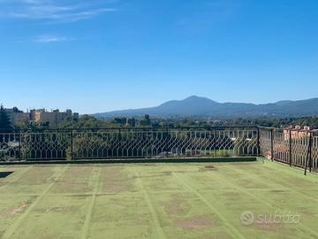 Palestrina, via Pedemontana altezza scuole superiori, centralissima posizione, vicino a tutti i servizi, appartamento in buone condizioni posto al piano primo di una piccola palazzina di sole quattro abitazioni, Con una superficie di 80 mq composta da un ingresso, salone, cucina abitabile, corridoio, camera matrimoniale molto grande, altra camera e bagno. Tutti gli ambient si affacciano direttamente al terrazzo perimetrale e panoramico, con affaccio al lato opposto di via Pedemontana, garantendo una privacy e un esposizione a sud. Completa la proprietà una terrazza di proprietà esclusiva dell'appartamento di 60 mq panoramicissima e due posti auto scoperti ma custoditi da cancello automatizzato carrabile.