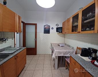 In una delle zone più richieste per l'ottimale combinazione tra residenzialità e servizi, Appartamento di mq 130 posto al 3°piano con ascensore. Attualmente l'immobile è così diviso: disimpegno all'ingresso, salone con sfogo su un bel balcone perimetrale di mq 30 in parte abitabile e panoramico sulle montagne, cucina con dispensa e comodo balcone sul retro, due camere grandi e una camera singola, bagno principale con doccia e bagnetto di servizio finestrato; completa la proprietà una cantina di mq 6 circa!! Portone blindato ed infissi termici nuovi del 2021; il resto delle finiture sono dell'epoca con pavimenti in marmo in buono stato di manutenzione. L'impiantistica è funzionante sebbene sia datata, ad eccezione del bagno principale che è stato completamente rifatto nel 2010; l'impianto di riscaldamento è autonomo in rame con termosifoni in ghisa. Questa soluzione si caratterizza per gli ambienti di ampio respiro, grazie all'esposizione su 3 lati e i soffitti alti 3 metri; la luminosità e il panorama di cui gode parte del balcone rappresentano un ulteriore valore aggiunto. L'ampia metratura consente di realizzare una divisione degli spazi funzionale ed in chiave moderna, creando con poco anche una quarta camera o comunque uno studio. Il condominio si presenta in buono stato nelle parti comuni e la posizione è a pochi passi da diversi negozi, asili, scuole e supermercati, nonché vicina a parchi verde attrezzati....per questi motivi molto apprezzata da famiglie giovani.