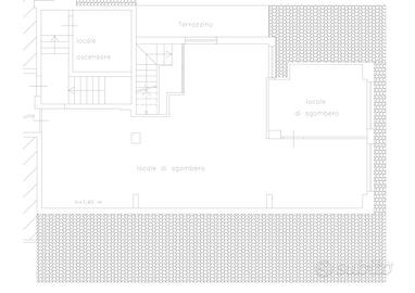 La mansarda, accessibile come detto sia internamente che esternamente, si compone di un unico ampio ambiente, una stanzetta e un balcone.