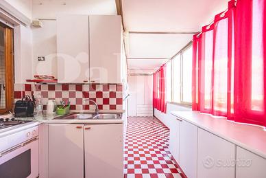 Ci troviamo tra Via Col D'Echele e la Via Argonne,l'immobile che presentiamo si compone da un ampio salone doppio con finestra e porta finestra con balcone chiuso,una zona pranzo a piano sfalsato e con uscita ad un secondo balcone chiuso e panoramico,dove troviamo la zona cucina ed attigua ad essa una zona lavanderia .