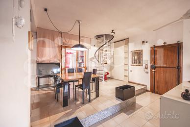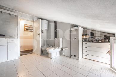 Nella zona giorno è presente una scala a chiocciola che porta nella zona mansardata dell'abitazione di circa 30 mq , utile come ulteriore zona letto ospiti,o zona hobby e da un bagno finestrato dove è presente la doccia,utile per servire la mansarda e il resto della casa .