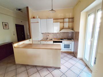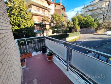 Appartamento di 110 mq posto al piano secondo servito da ascensore. Composto da: ingresso, ampio soggiorno con balcone, cucina con balcone, due camere, studio-cameretta con balcone e bagno finestrato. Termo-autonomo. Buono stato. Garage di 19 mq al piano terra. Rif. 6/03