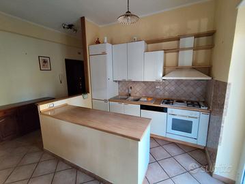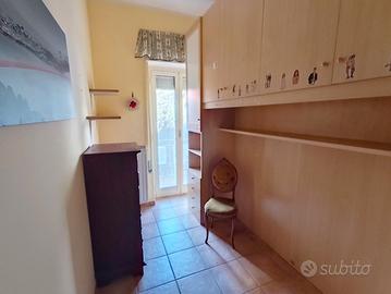 Appartamento di 110 mq posto al piano secondo servito da ascensore. Composto da: ingresso, ampio soggiorno con balcone, cucina con balcone, due camere, studio-cameretta con balcone e bagno finestrato. Termo-autonomo. Buono stato. Garage di 19 mq al piano terra. Rif. 6/03