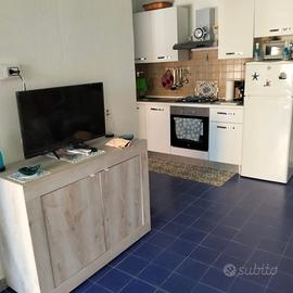 Proponiamo in vendita a Scalea (CS), precisamente in "Parco il Faro", grazioso bilocale posto al piano terra di una palazzina di due piani. L'immobile ha un ampio giardino di pertinenza di circa 130 mq, un gradevole spazio dove stare all'aria aperta in compagnia di parenti, amici e amici a quattro zampe. L'immobile è così composto: soggiorno con angolo cottura, camera, bagno, posto auto condominiale. Aria condizionata, portone blindato e zanzariere. Comodo ripostiglio. Siamo a disposizione per ulteriori informazioni. RIF 708. We offer for sale in Scalea (CS), specifically in "Parco il Faro", a charming two-room apartment on the ground floor of a two-story building. The property boasts a large private garden of approximately 130 square meters, a pleasant space for spending time outdoors with family, friends, and pets. The property comprises: living room with kitchenette, bedroom, bathroom, and shared parking space. Air conditioning, a security door, and mosquito nets are also included. We are available for further information.