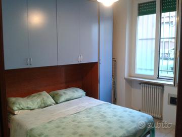 Al piano terra di un condominio, via A.Cecchi, 7 Parma, bilocale con porta blindata e finestre in alluminio bianco doppio taglio termico e doppiovetro con cancellate in ferro zincato, teleriscaldamento centralizzato, con termo valvole a norma e pagamento a consumo, scaldabagno elettrico quando il teleriscaldamento è spento, utenze luce, acqua e gas autonome, arredato, porte interne color ciliegio scorrevoli, ingresso soggiorno, angolo cottura, disimpegno con armadio a muro, che conduce al bagno con box doccia e lavatrice, lavabo, wc, bidet, camera da letto matrimoniale con armadio e comodini e comò, tutti gli ambienti illuminati da lampadari ed applique, l'appartamento è comprensivo di una cantina, non è disponibile di alcun posto auto o moto, prezzo non trattabile.