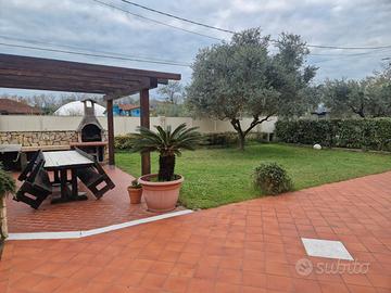 Ampio giardino privato, completamente recintato, con zona barbecue ideale per pranzi all'aperto e momenti di relax