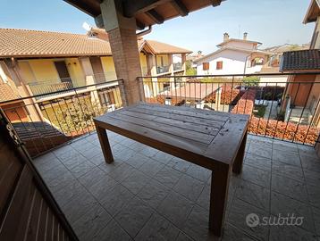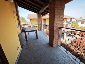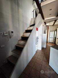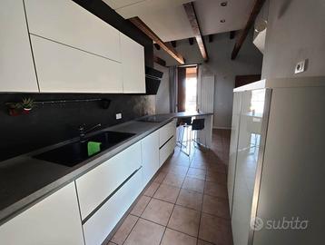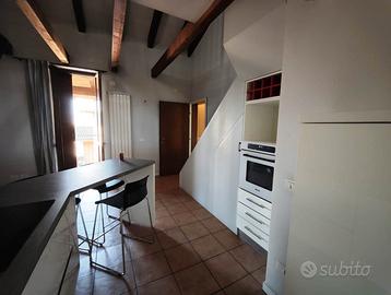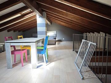 6 KM CREMA particolarissimo appartamento con soppalco con vista sulla zona giorno, composto da soggiorno/pranzo, 2 camere armadio, bagno, ampio terrazzo, loggia uso lavanderia e sottotetto pluriuso. Si vende con arredo cucina su misura e armadi. Ottime finiture, climatizzatori in ogni ambiente. Scala di sole 4 famiglie, piano 1° ed ultimo. Completano la proprietà l'ampio box doppio e il posto auto. Prezzo ? 175.000,00 Cl. En. "E" IPE 241,10kwh/mqa. Rif. 43