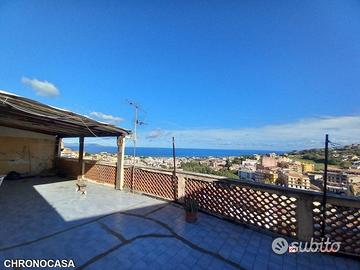 L'immobile con doppio ingresso risulta al quarto piano senza ascensore da un ingresso e dall'altro ingresso al primo piano, ha una metratura di mq 119 ed è composto da: ingresso in corridoio, salone con affaccio siu ampio e panoramico terrazzo di mq 80, cucina, tre camere da letto, bagno e ripostiglio.