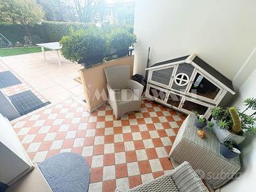(Riferimento: BS-052-RV) Cordignano (Rif. BS-052-RV) AMPIO E LUMINOSO APPARTAMENTO PARI AL NUOVO | 3 CAMERE DA LETTO | 2 BAGNI ENTRAMBI FINESTRATI | AMPIA PORZIONE DI GIARDINO ESCLUSIVO RECINTATO E PIANTUMATO | GARAGE DOPPIO (44MQ) | RISCALDAMENTO AUTONOMO | DOPPIO CLIMATIZZATORE (IN POMPA DI CALORE) | BASSISSIME SPESE CONDOMINIALI! Proponiamo in vendita, a soli 5 minuti dall'autostrada ed a soli 10 minuti circa dal centro di Sacile, quest'interessantissimo appartamento TRICAMERE con DUE BAGNI (ENTRAMBI FINESTRATI) con porzione di GIARDINO esclusiva ed ampio GARAGE DOPPIO (di 44mq) in ottime condizioni generali, pari al nuovo, situato in una piccola palazzina di sole 6 unità abitative, costruita nel 2006. L'appartamento si trova al piano terra, si sviluppa su circa 134mq interni, ed è così composto: ingresso, ampissima zona soggiorno/pranzo open-space con angolo cottura a vista, disimpegno con armadiatura a muro, ampia camera da letto matrimoniale, camera doppia, cameretta, bagno finestrato con vasca e bagno finestrato con doccia. Completa la proprietà, l'ampio terrazzo abitabile (dal quale si accede dalla zona cucina) accessoriato di locale termico/lavanderia, il secondo terrazzo/portico con accesso diretto alla porzione esclusiva di giardino (già recintato e piantumato) ed, al piano semi-interrato, l'ampio e funzionale garage doppio di 44mq dotato di ripostiglio/cantina e lavabo interno. L'immobile ha le seguenti dotazioni: caldaia autonoma a gas metano, doppio climatizzatore "Daikin" (zona giorno/notte) in pompa di calore, portoncino blindato, videocitofono, infissi in doppio vetro/legno con zanzariere, irrigazione automatica del giardino, tenda da sole esterna e le dichiarazioni di conformità degli impianti elettrici ed idraulici. Un appartamento UNICO NEL SUO GENERE che garantisce spazi, luminosità e privacy con degli spazi ampi e delle finiture pari al nuovo! Contattaci e programma il sopra