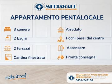 (Riferimento: BS-094-RV) Pordenone - zona centrale (Rif. BS-094-RV) AMPIO E LUMINOSO APPARTAMENTO TRICAMERE | PALAZZINA RIQUALIFICATA CON SUPERBONUS 110% | 3 CAMERE DA LETTO | 2 BAGNI | 2 TERRAZZI | CANTINA FINESTRATA | DISPONIBILITA' IMMEDIATA In una delle migliori zone di Pordenone, a pochi passi dal centro pedonale, proponiamo in vendita questo interessante appartamento tricamere, posto al 1° piano (con ascensore), in palazzina costruita negli anni 60' e recentemente ristrutturata con il SUPERBONUS 110%. L'immobile si trova in una posizione strategica, nel cuore di Pordenone, a pochi passi da tutti i principali servizi. L'edificio, costruito negli anni 60', ha subito un'importante ristrutturazione che ha riguardato: la sostituzione della caldaia condominiale con l'installazione dei contacalorie nei termosifoni, l'installazione del cappotto termico esterno con relativa tinteggiatura, la sostituzione degli infissi delle parti comuni; una riqualificazione che assicura un elevato risparmio energetico e un comfort abitativo superiore. L'immobile si sviluppa su circa 118mq interni ed è così composto: ingresso, piccolo ripostiglio, primo bagno di servizio finestrato, cucina abitabile con accesso al primo terrazzo, disimpegno, ampia e luminosissima zona living con accesso al secondo terrazzo, secondo bagno finestrato con box doccia, 3 camere da letto di cui una matrimoniale. Completa la proprietà una comoda cantina finestrata. L'APPARTAMENTO VIENE CEDUTO TOTALMENTE ARREDATO COME DA FOTOGRAFIE. Possibilità di percepire il contributo regionale a fondo perduto fino ad un massimo di € 15.000,00 Le spese condominiali ammontano a circa € 2000,00- annui e comprendono: pulizia scale, luce scale, amministratore di condominio, assicurazione dello stabile, ascensore, l'utilizzo dell'acqua fredda ed il riscaldamento. Grazie alla recente ristrutturazione, la casa è in pronta consegna e rappresenta una soluzione