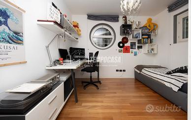 Adiacente alla zona living troviamo la cucina abitabile, completa di cucina inclusa nella vendita. L'ambiente è dotato di impianto per frigorifero con icemaker e filtro per acqua potabile, soluzione pratica e di grande comfort nella vita quotidiana. A completamento della zona giorno è presente anche uno studio, ideale come spazio di lavoro o vera e propria camera da letto.