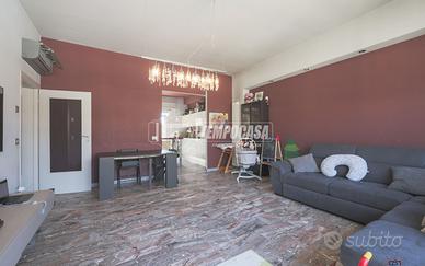 Soggiorno ampio e luminoso con accesso a balcone affacciato sulla via storica.
