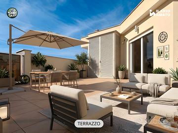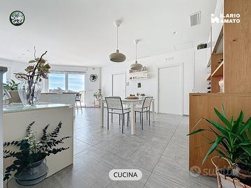 FAVOLOSO Appartamento con Veranda e Box Auto da comprare nella nuova zona 167 di Molfetta. Siamo in via SPADOLINI, in un moderno fabbricato costruito nel 2019 e dotato di ascensore che scende fino ai box. Bastano pochi secondi per capire che non si tratta di una casa qualunque. È una casa che trasmette subito una sensazione diversa: spazi generosi, luce, e un equilibrio perfetto tra estetica e funzionalità. L'immobile è in classe energetica A3, significa... consumi contenuti, maggiore efficienza e bollette decisamente più leggere. Inoltre, se dovessi acquistare con mutuo, potresti accedere alle condizioni agevolate dei mutui green, dedicate proprio agli immobili con elevate prestazioni energetiche. Richiesta € 358.000 La casa si sviluppa su due livelli collegati da una scala interna. Al piano superiore troviamo un ampio ambiente con cucina e zona pranzo con accesso diretto al terrazzo panoramico. Sullo stesso livello sono presenti anche uno studio e un bagno con zona lavanderia. Scendendo al livello inferiore si apre una raffinata zona salotto, un disimpegno, una camera da letto doppia, una camera matrimoniale con cabina armadio e bagno. A completare la proprietà troviamo tre balconi e il Box Auto di 24 mq Catastali. La veranda e i balconi hanno affacci ariosi e panoramici che regalano respiro e libertà. L'appartamento sviluppa la superficie di 154 mq Catastali Interni e ben 60 di mq di spazi esterni e tra le dotazioni interne abbiamo: Riscaldamento e raffrescamento a pavimento con deumidificazione canalizzata, impianto fotovoltaico, solare termico per la produzione di acqua calda, porte scorrevoli, ampie finestre in PVC, tapparelle blindate motorizzate, impianto d'allarme interno ed esterno, controsoffitti con illuminazione integrata e tanto altro ancora... In sintesi, non è soltanto un appartamento moderno ed elegante. È una casa progettata per offrire comfort, qualità abitativa e il piacere di vivere appieno sia gli spazi interni che quelli esterni.