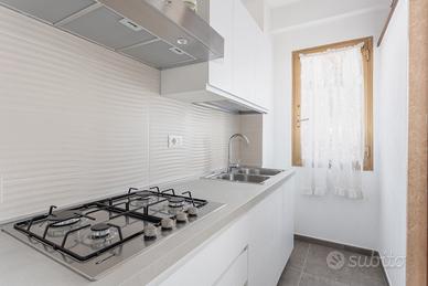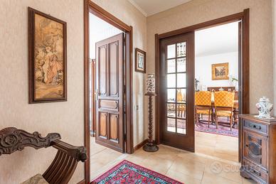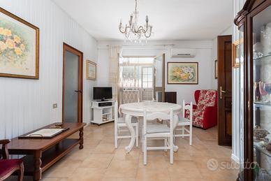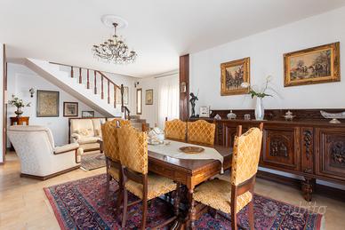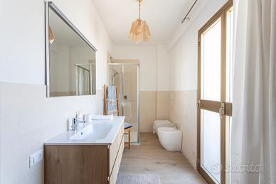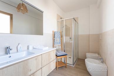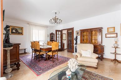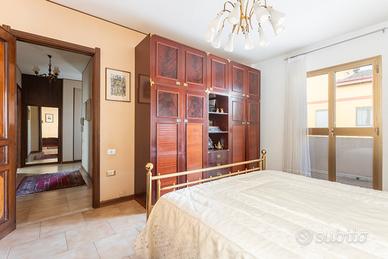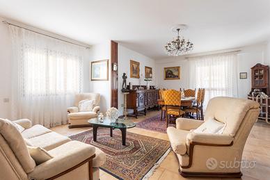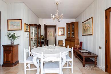 La distribuzione interna comprende tre camere da letto e due bagni, soluzione adatta a famiglie o a chi necessita di ambienti versatili. L'immobile gode di una doppia esposizione est e ovest che assicura una buona luminosità naturale. Gli spazi esterni sono un vero valore aggiunto: sono presenti due balconi, due verande coperte ad uso esclusivo, oltre a una loggia e a un lastricato frontale arredato con panchine, anch'essi a uso privato.