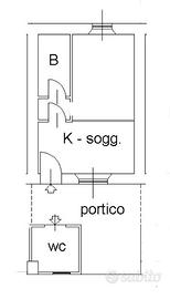 L'appartamento è cosi disposto: ingresso nel soggiorno con cucina a vista; tramite disimpegno accediamo alla zona notte dove troviamo la camera matrimoniale e il bagno finestrato con doccia.