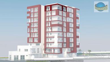 Pescara San Silvestro confini Francavilla al mare (CH). In palazzina di nuova costruzione consegna settembre 2027, app. ti in classe A, isolamento termoacustico a cappotto, impianto fotovoltaico condominiale, no gas tutto elettrico, predisposizione per impianto di climatizzazione e per impianto di allarme, possibilità di installare il barbecue, parquet porcellanato di 1°scelta, portoncini blindati automatici, riscaldamento a pavimento, infissi in PVC scorrevoli vetrocamera c/anta a ribalta, ecc. Appartamento piano nono composto: soggiorno pranzo con cucina a vista, 2 camera da letto, bagno, terrazzo e balcone. Disponibilità di varie tipologie con posti auto all'interno dell'area condominiale e possibilità di garage ESPANSIONE Agenzie Immobiliari Francavilla al Mare - Pescara - Montesilvano Spiaggia.
