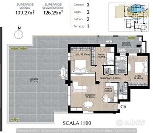 Pescara San Silvestro confini Francavilla al mare (CH). In palazzina di nuova costruzione consegna giugno 2027, app. ti in classe A, isolamento termoacustico a cappotto, impianto fotovoltaico condominiale, no gas tutto elettrico, predisposizione per impianto di climatizzazione e per impianto di allarme, possibilità di installare il barbecue, parquet porcellanato di 1°scelta, portoncini blindati automatici, riscaldamento a pavimento, infissi in PVC scorrevoli vetrocamera c/anta a ribalta, ecc. Appartamento piano secondo composto: soggiorno pranzo con cucina a vista, 3 camera da letto, 2 bagni, lavanderia, terrazzo di mq. 111, balcone e posto auto di proprietà. Disponibilità di varie tipologie con posti auto all'interno dell'area condominiale e possibilità di garage ESPANSIONE Agenzie Immobiliari Francavilla al Mare - Pescara - Montesilvano Spiaggia