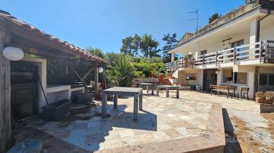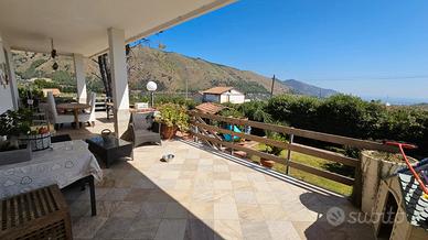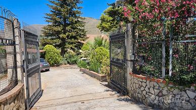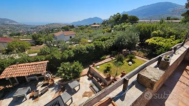 Villa Unifamiliare di 164mq con terreno perimetrale in un lotto di 1700mq, sito in via Pezzingoli, disposta su 2 livelli più piano seminterrato. Composta da: semicantinato con porticato di 37 mq attualmente adibito a cucina soggiorno, disimpegno, 3 camere da letto ed un servizio con doccia più box di 18 mq circa; piano rialzato con porticato coperto di 34 mq, cucina abitabile di 30 mq, salone, disimpegno, 2 camere da letto, servizio con vasca, ripostiglio, scala interna che porta al 1° piano con camera da letto, cabina armadio e servizio con doccia più terrazzo di circa 20 mq. La Villa si presenta in ottime condizioni, periodicamente manutenzionata, ampi spazi esterni in parte adornato con piante e giardino, alberi da frutto, mentre la restante parte adibita a zona living e barbecue. La Villa è fornita di riscaldamento autonomo con caldaia a sansa, climatizzata, impianto d'allarme e videosorveglianza. Le Ville confinanti sono abitate tutto l'anno. L'immobile dista a 1,5 km dall'Acquapark Monreale ed a 7 km da Palermo.