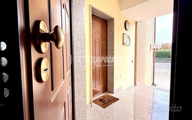L'appartamento offre una distribuzione perfetta con cucina, sala, due camere e due bagni. Il vero valore aggiunto? Lo spazio esterno: una terrazza vivibile unita a una porzione di giardino privato.