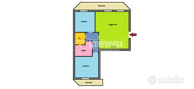 INTERNO: l' appartamento è arioso nell' arco di tutta la giornata e nel balcone abitabile è possibile soggiornare godendo della splendida sul verde circostante. L' impianto di riscaldamento è autonomo a metano con elementi radianti in alluminio, infissi in legno con doppio vetro a taglio termico.