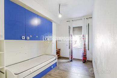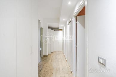 L'appartamento è così composto: Ingresso su soggiorno con cucina a vista, due camere da letto matrimoniali, una camera singola, bagno principale con doccia e lavatrice, secondo bagno a servizio della camera matrimoniale con doccia. Conclude la soluzione una cantina di 10mq e un posto auto privato.