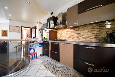 All'ingresso ci accoglie un soggiorno con cucina a vista di oltre 30 mq. Una grande porta finestra apre sul cortile privato, un angolo esterno esclusivo dove cenare all'aperto, organizzare un barbecue.