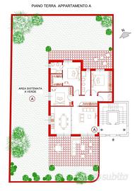 Al piano terra, questo elegante appartamento, con tripla esposizione, si distingue per l'architettura moderna e i materiali di alta qualità. Si compone di un ampio soggiorno ed una cucina abitabile e separata, entrambe con affaccio su un porticato di oltre 35 mq. Tramite disimpegno si accede alla zona notte, la quale comprende tre camere da letto, una delle quali con bagno en-suite e cabina armadio; bagno principale, lavanderia ed un secondo porticato di circa 20 mq.