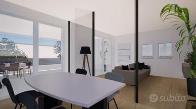 L'appartamento sarà dotato di impianto di riscaldamento a pavimento, alimentato da pompa di calore ad alto rendimento con serbatoio di accumulo fino a 150 litri anche per l'acqua calda sanitaria, con controllo da remoto per la gestione dell'impianto e dei consumi.