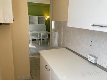 Piccola palazzina ove ubicato il bilocale con ingresso esclusivo. Entrata direttamente su salotto soggiorno con cucinino a parte.