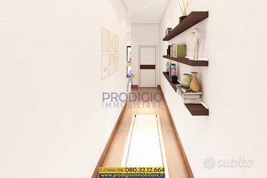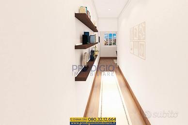 Il corridoio separa alle due estremità il bagno, completo di tutti i servizi e la cucina abitabile, cuore della casa, è spaziosa e luminosa.