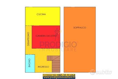 Composto da ingresso nel disimpegno, accogliente e ben illuminato, il disimpegno dà accesso ad una comoda camera da letto, al soppalco, un elemento distintivo di questa proprietà è che aggiunge un tocco di eleganza oltre ad offrire uno spazio aggiuntivo, accessibile tramite una scala in legno comodissima, al ripostiglio, pratico e funzionale utile per conservare gli oggetti di uso quotidiano.